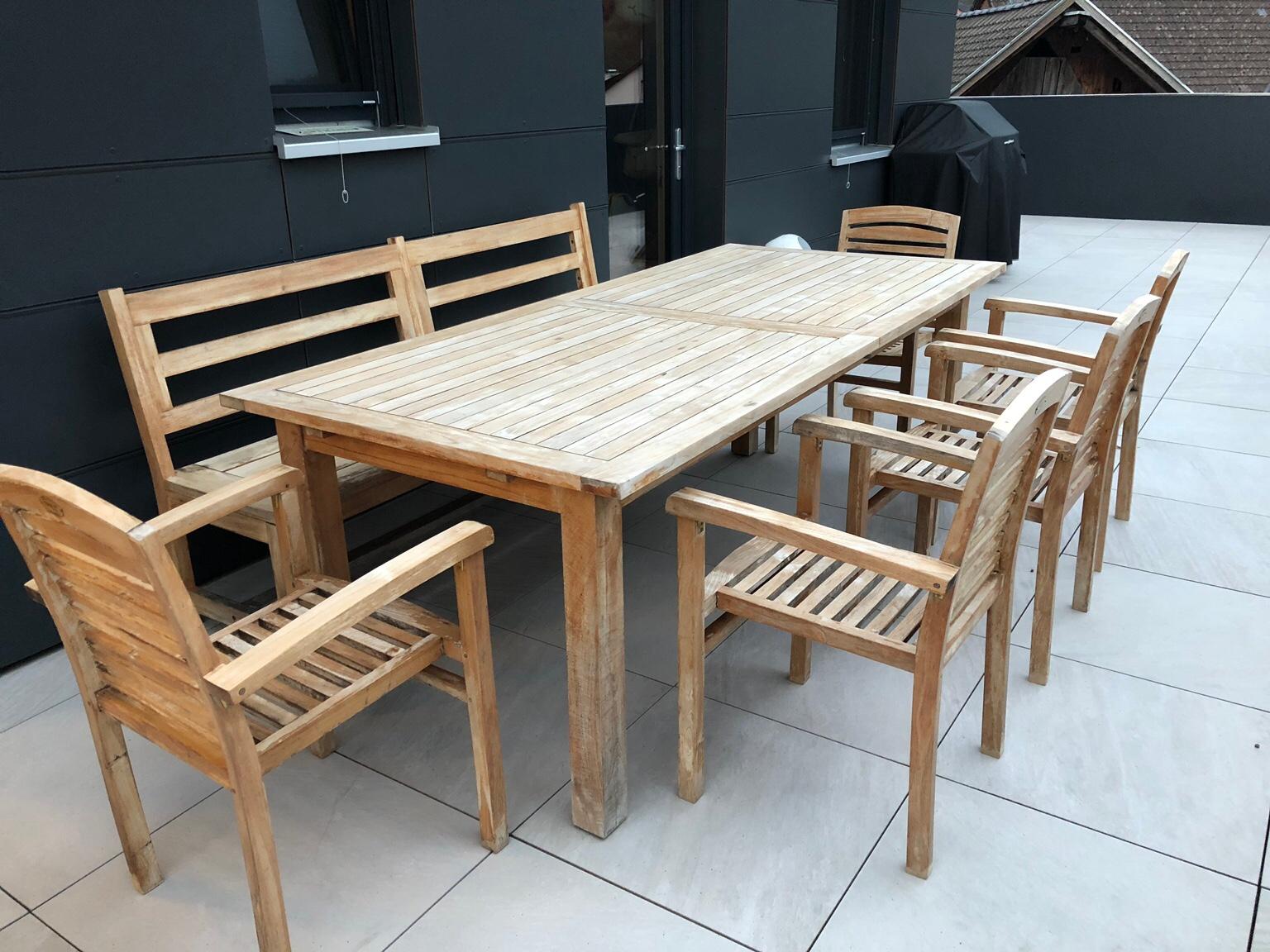 Hochwertige gartenmöbel aus wetterfestem teakholz.